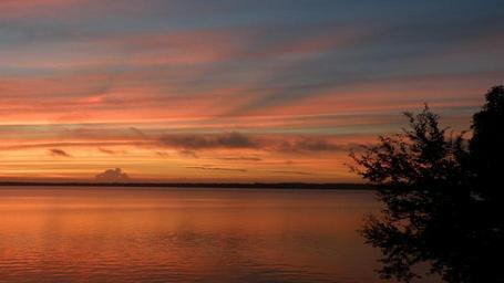 Keywords: sunrise clouds river water tree