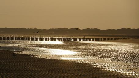 Keywords: sunrise golden beach north sea summer