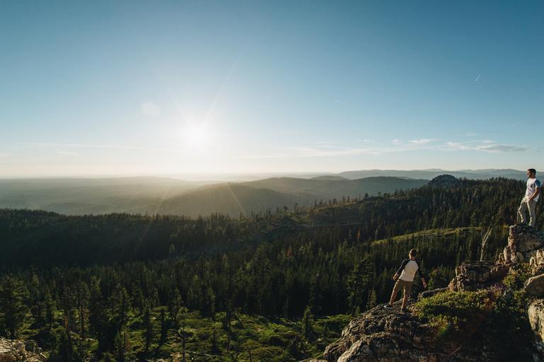 Keywords: sunrise landscape nature outdoors people hiking trekking adventure trees forest mountains hills fields valleys blue sky