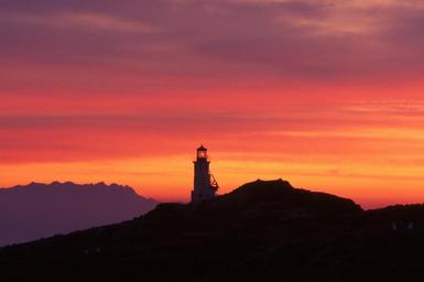 Keywords: sunrise lighthouse dawn silhouettes mountains coast sky colorful light dark darkness black color backdrop seascape orange beam warning guide rocks sea blackness morning building architecture