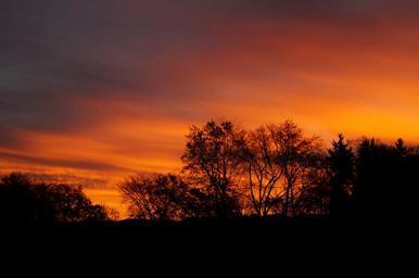 Keywords: sunrise morgenrot skies bright red light trees