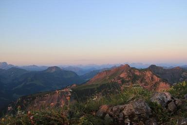 Keywords: sunrise morgenrot sun light landscape skyline horizon mountains sky kanisfluh bregenzerwald vorarlberg nice weather alpine summer holiday panoramic views alpine panorama