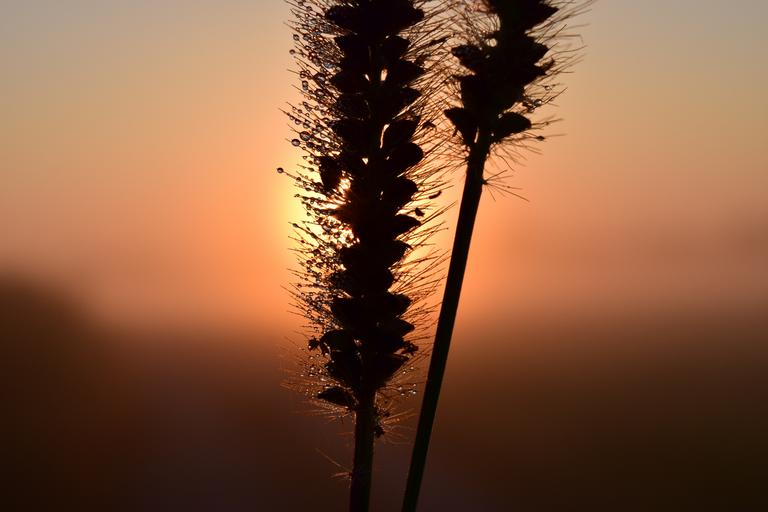 Keywords: sunrise morgentau dew nature red morgenrot close dewdrop grass plant back light