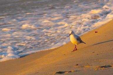 Keywords: sunrise seagull beach water foam tide morning landscape coast bird wildlife nature ocean shore seascape peaceful sand seaside walking