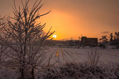 Keywords: sunrise sun snow travel street sky cloud landscape