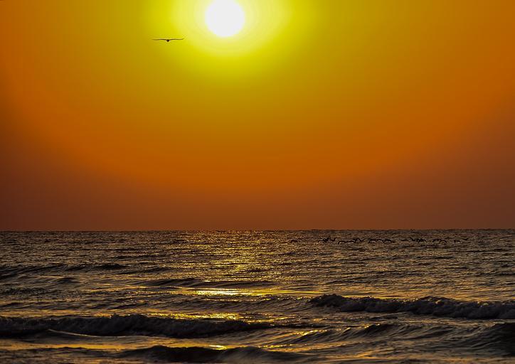 Keywords: sunrise waves golden bird sea sky sunlight water beautiful beauty view nature summer