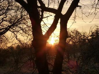 Keywords: sunrise winter idyll morgenrot skies winter hoarfrost trees morgenstimmung landscape sun morning light