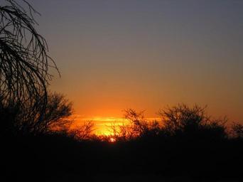 Keywords: sunset africa bright horizon clouds flecks bush brush orange sky