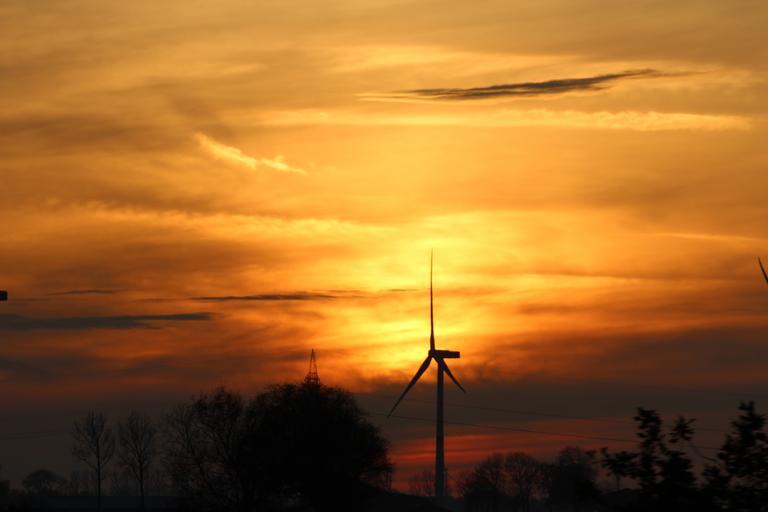 Keywords: sunset afterglow evening sky nature pinwheel wind turbine