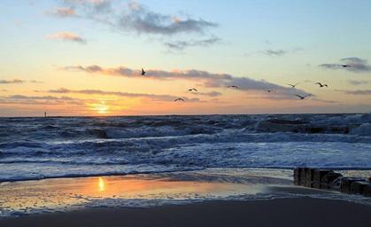 Keywords: sunset afterglow evening sky abendstimmung water clouds beach back light sun sea nature sky