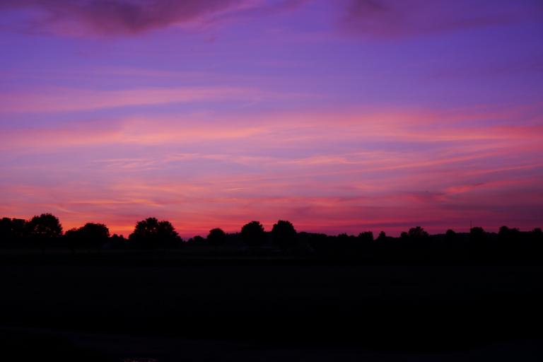 Keywords: sunset afterglow morgenrot cloud clouds romance atmosphere light dusk purple pink blue horizon shadow trees contrast relax nature