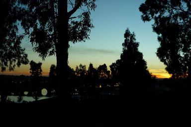 Keywords: sunset afternoon night darkness trees eucalyptus landscape shadow silhouettes bridge river view