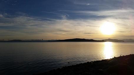 Keywords: sunset bay shore san francisco water sky landscape coastline peaceful relax calm