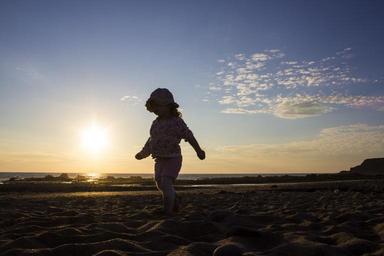 Keywords: sunset beach girl child ocean sea vacation sky summer nature horizon sand coast landscape shore orange silhouette
