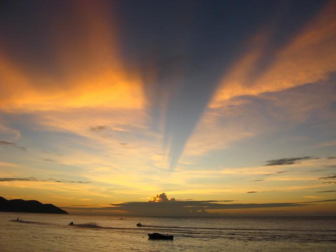 Keywords: sunset beach ocean orange sky evening boat