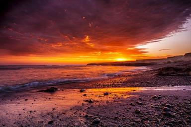 Keywords: sunset beach sand rocks sky dusk ocean waves water sea