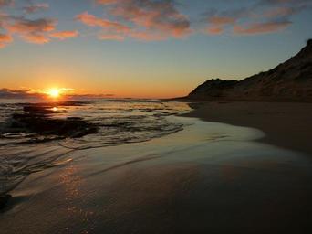 Keywords: sunset beach sky sun coast shore orange dusk