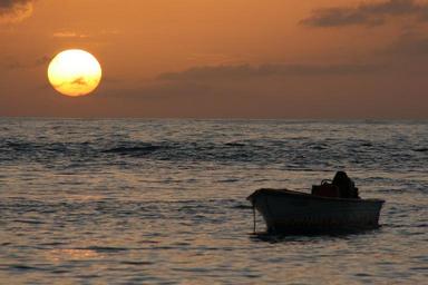 Keywords: sunset boat sea horizon water