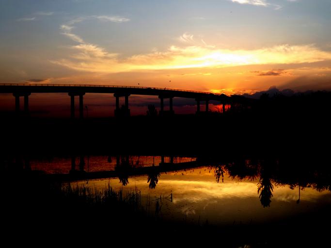 Keywords: sunset bridge sun water reflection red in the evening
