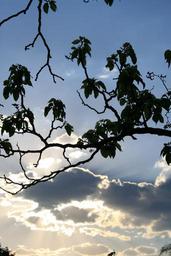 Keywords: sunset bright clouds dark edge gilt sky blue tree branch foliage