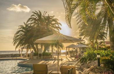 Keywords: sunset cabana beach vacation travel holiday sea nature evening summer water luxury outdoor romantic umbrella resort ocean tropical romance clouds sky