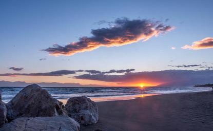 Keywords: sunset cabopino mijas costa malaga andalusia beach rocks sun water marina stillness spain costa del sol blue horizon