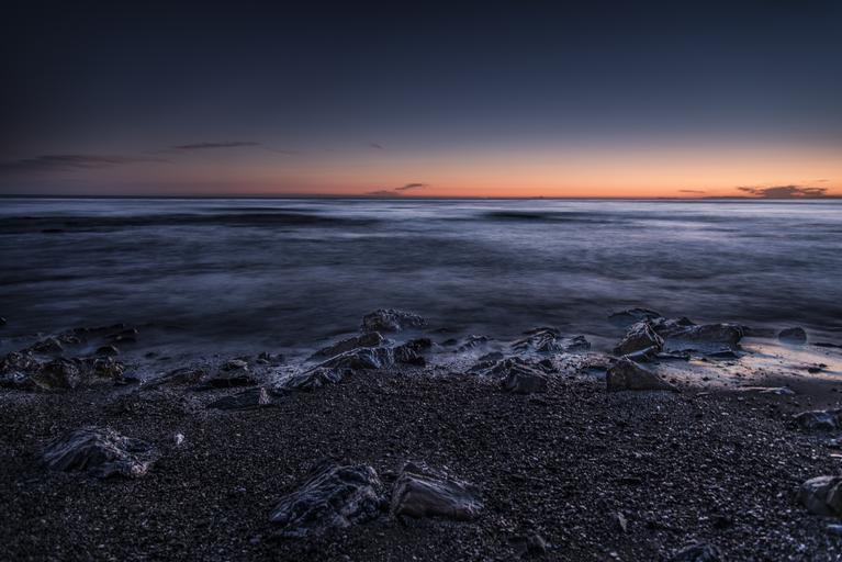 Keywords: sunset calahonda mijas malaga costa del sol andalusia spain sun blue clouds sky beach sea horizon landscape stillness rocks peaceful marina waves