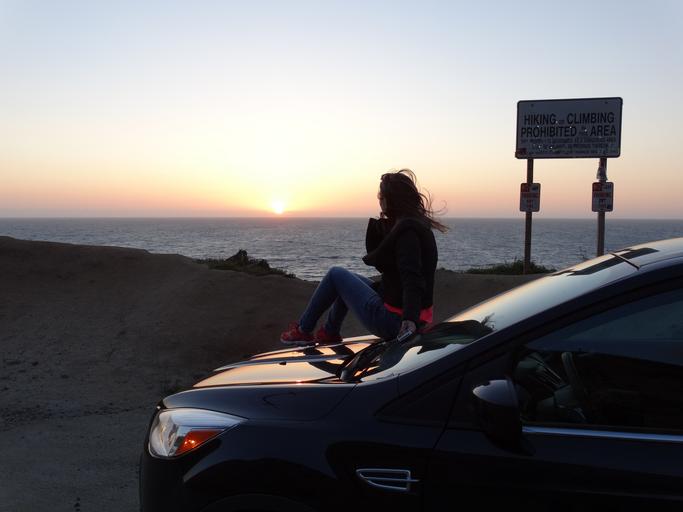 Keywords: sunset car landscape travel sky blue highway vehicle freeway california