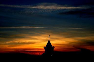 Keywords: sunset castle in the evening sky cloud shadows red blue