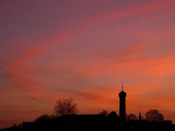 Keywords: sunset church tower city afterglow pastel love romance silhouette building steeple