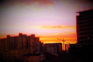 Keywords: sunset city construction cityscape downtown building sky urban kosovo pristina balkans architecture