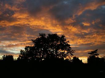 Keywords: sunset clouds dusk afterglow sky red glow trees sun