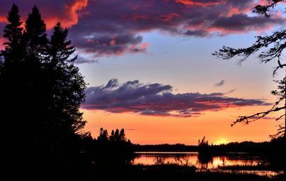 Keywords: sunset clouds sky orange twilight trees nature lake québec