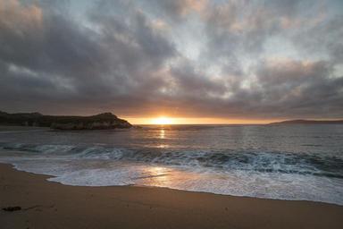 Keywords: sunset coastline beach sand waves rocks surf nature seascape coast sky sea ocean outdoors seashore water shore reflections clouds