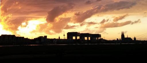 Keywords: sunset cologne cologne on the rhine rhine sun fire clouds rheinland bank water dom cologne cathedral city panorama