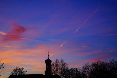 Keywords: sunset evening hour sky pastellfarben colorful color church steeple ulm holy trinity church spire onion dome clouds blue tower turrets onion helm great roof faith christianity building