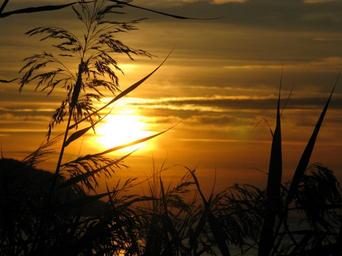 Keywords: sunset evening sky afterglow nature back light mood sunbeam blades of grass golden sun