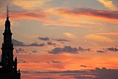 Keywords: sunset evening sky atmospheric nature clouds sky abendstimmung evening afterglow dusk red orange red sky cloudy sky mood sky colors romantic twilight at dusk building old building cloud image romance clouded sky spire tower