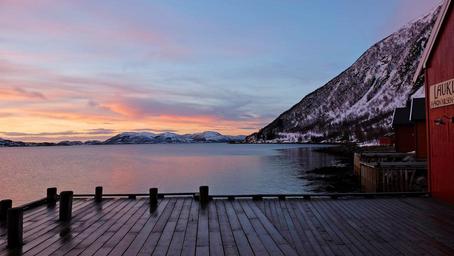 Keywords: sunset ever-changing orange red blue reflection amazing beautiful sea fjord snow mountain winter travel lauklines kystferie kvaloya kvaløysletta norway tromso scandinavia europe