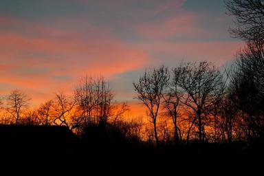 Keywords: sunset fiery afterglow evening sky clouds sky trees abendstimmung reddish
