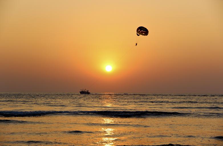 Keywords: sunset flying beach ocean summer waves adventure seaside parachute parasailing