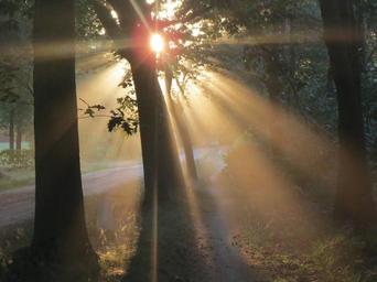 Keywords: sunset forest colorful sunset evening sun trees setting sun landscape mysterious netherlands beauty