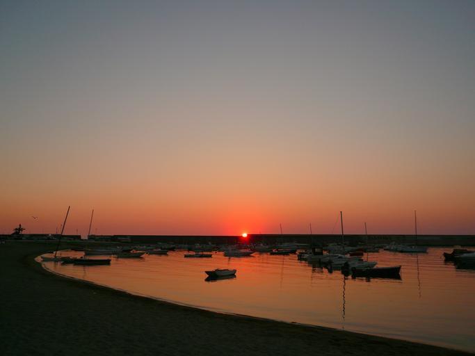 Keywords: sunset harbor boats sky ocean water evening night dusk scenic nature coast panorama sundown orange