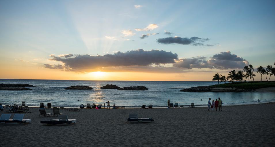 Keywords: sunset hawaii sun rays people person beach ocean hawaii beach summer travel vacation beach sunset sea sunset beach nature tropical sky water island outdoor landscape holiday pacific rocks lagoon exotic seascape coast coastline tourism tranquil bay scenery clouds blue sand