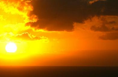 Keywords: sunset hawaiian ocean sea sky clouds seascape paradise island dusk orange colorful horizon