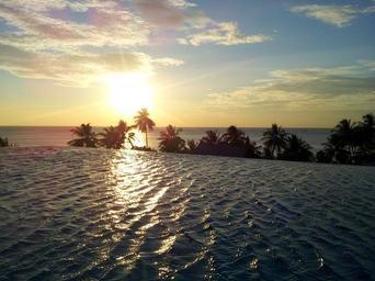 Keywords: sunset horizon evening rooftop pool clouds sky subtropics water ripple glare on the water sun island kochange vacation thailand