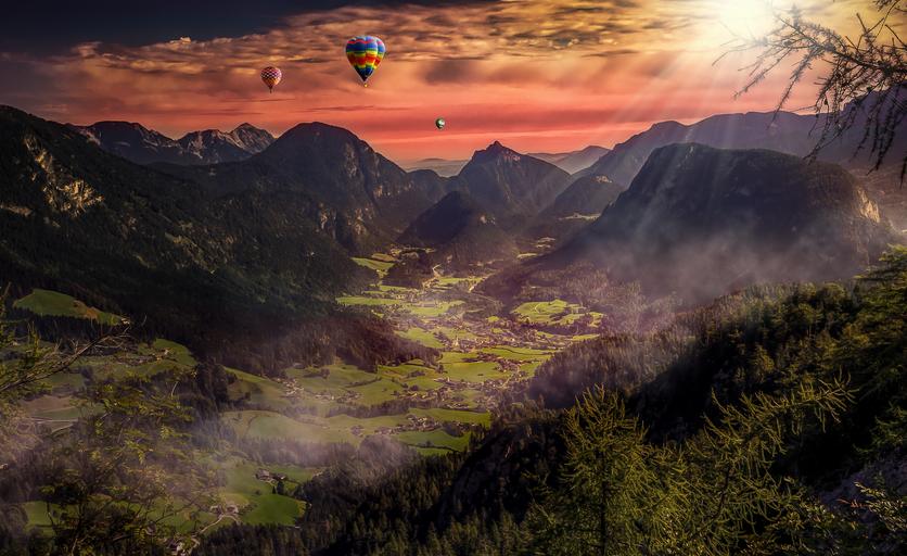 Keywords: sunset hot air balloon lighting romantic light beam landscape