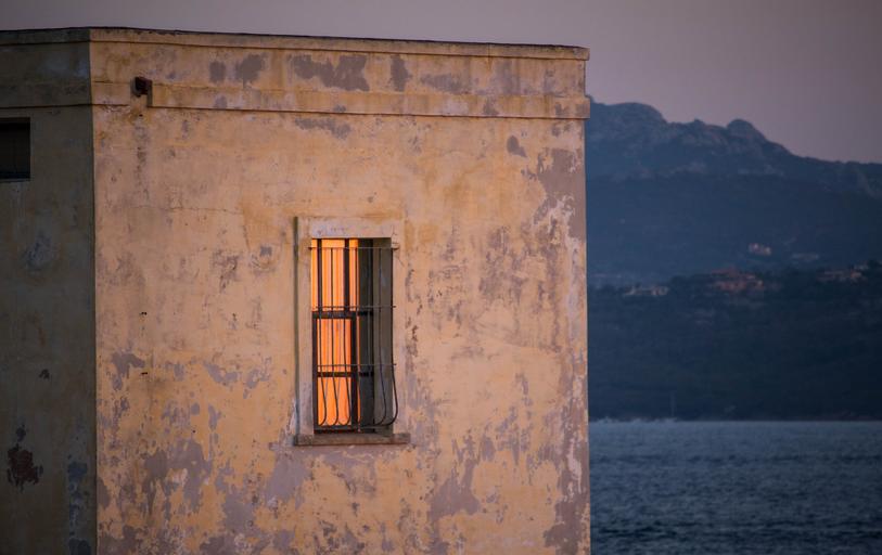 Keywords: sunset house twilight shadows orange backlight light shadow sun sky evening sea