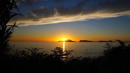 Keywords: sunset outdoor sky dusk serene sea shore beach landscape seaside Portiño harbour, close to Baiona Portiño harbour, close to Baiona