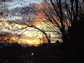 Sunset in Summit NJ looking west through trees with clouds.JPG (2592x1944)